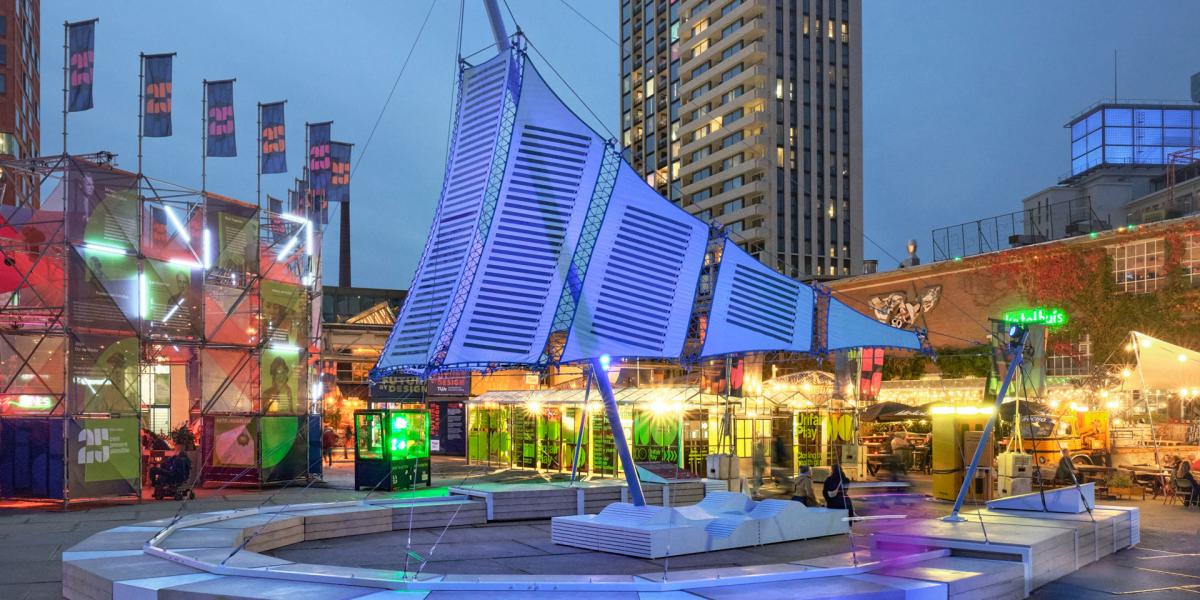 The Umbra Pavilion aims to raise awareness of climate adaptation and the energy transition through the power of design. More than just functional, the pavilion serves to educate visitors about the need for alternative energy solutions in cities.
