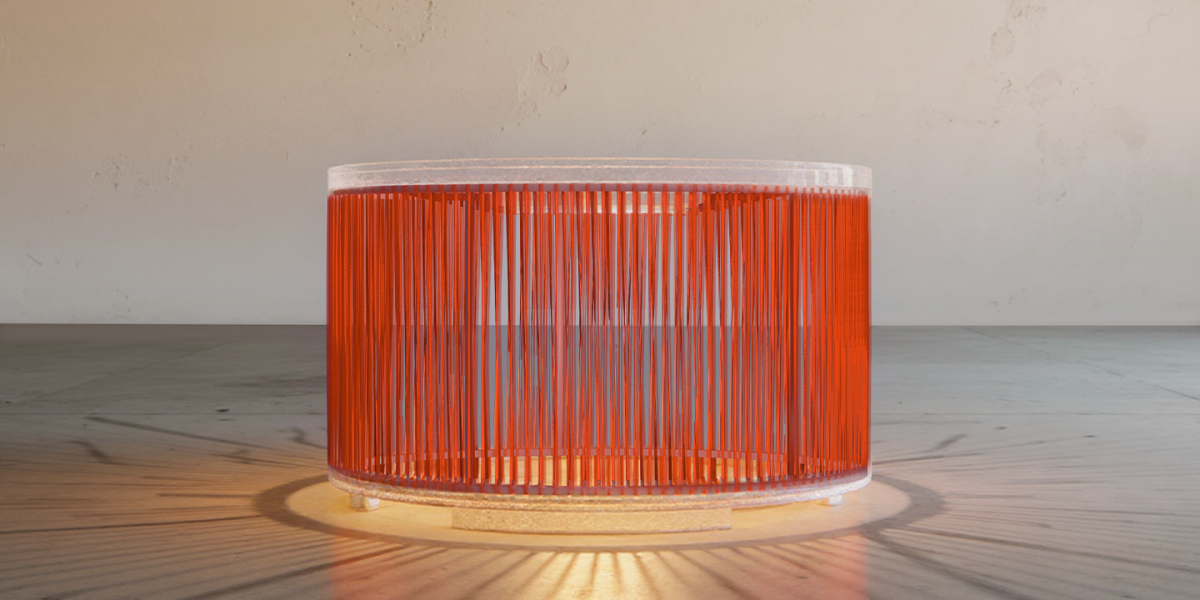 An adaptive-reuse light sculpture that explores structure, shadow, and craft. Modular frames are wrapped with reclaimed textiles, forming a lamp that evolves as its skin is replaced. Inviting continual re-making, the piece transforms waste streams into warm, architectural light.