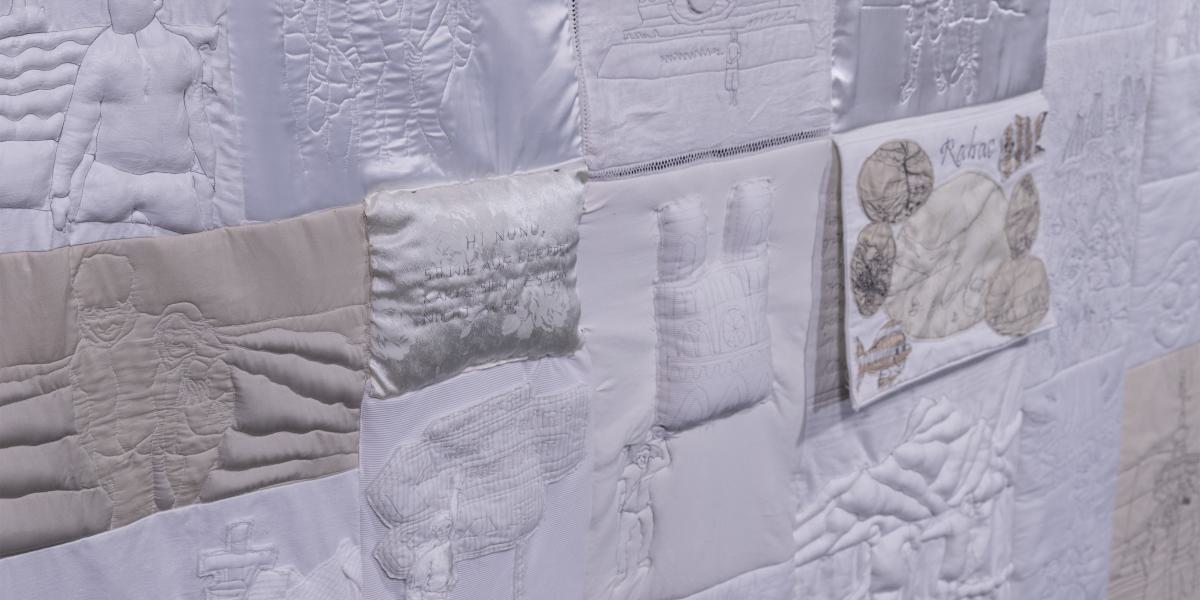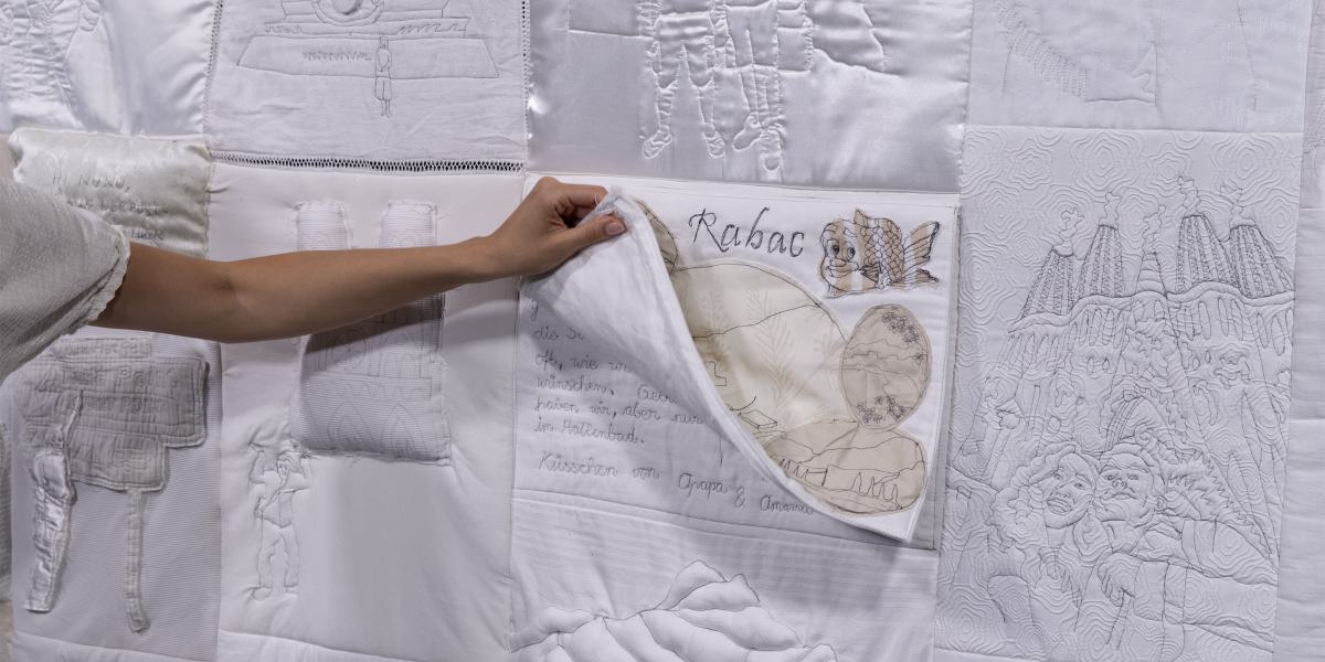 The narrative structure of fading memories unfolds through various techniques such as embroidering drawings and sewing in souvenirs and fragments from postcards and photographs. These textile layers and incorporated materials result in a sensory experience of memory that can be explored through smell, touch and sight.
