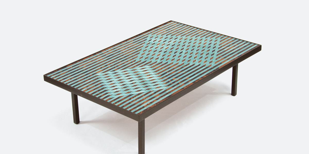 Patch is a coffee table inspired by traditional textile quilting techniques, patchworked together using marquetry.