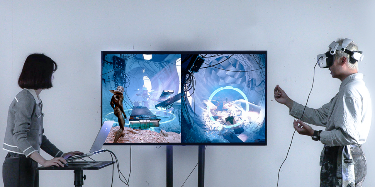 In deze asymmetrische VR-PC coöperatieve game neemt één speler de rol op zich van een MENSELIJKE ONTDEKKINGSREIZIGER (PC-speler), die door de resten van een vergeten creatieve tijd navigeert, verspreide aanwijzingen ontcijfert en verloren artefacten van menselijke expressie terugvindt. De andere speler belichaamt een ALOMTEGENWOORDIGE AI (VR-speler), met realtime controle over de omgeving — die het pad van de mens kan begeleiden, belemmeren of subtiel manipuleren.