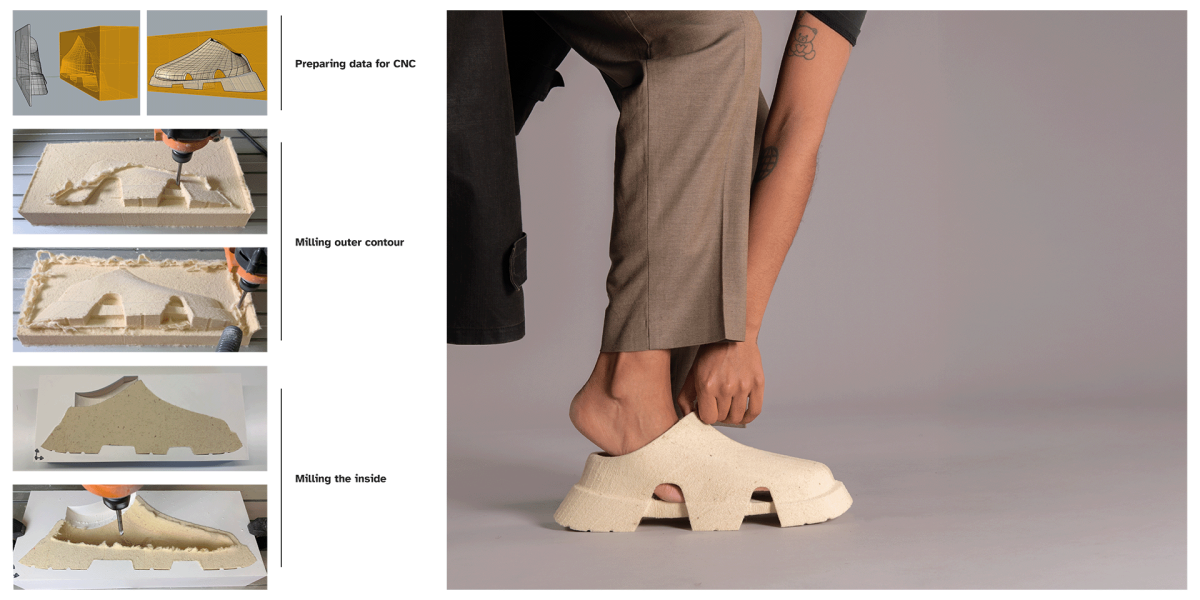 Door prototypes van schoenen van 100% wol te ontwikkelen, laat ik zien dat een aanpak met één materiaal haalbaar is. Deze aanpak kan de regionale schapenhouderij versterken, het behoud van heide-ecosystemen ondersteunen en traditionele schoenmakersvaardigheden nieuw leven inblazen.