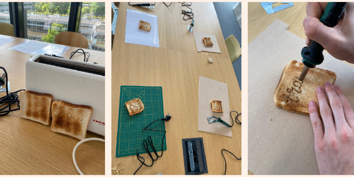 Dit resulteerde in drie ontwerp-interventies. Ten eerste, een laser-aangedreven broodroosterprinter om gedachte en discussie aan te wakkeren en een speculatief, maar ervaarbaar alternatief te presenteren. Ten tweede, organiseerde Kiki toast-graveer-sessies om op interactieve wijze te onderzoeken wat deelnemers vinden van en ervaren hebben met betrekking tot activisme en (online) communicatie. In de laatste stap, maakt Kiki een protest-bordje van brood, om tijdens de protest te ervaren hoe mensen reageren op zo een interventie terwijl zij ook het netwerk voor verder onderzoek tijdens haar afstudeerproject uitbreid.